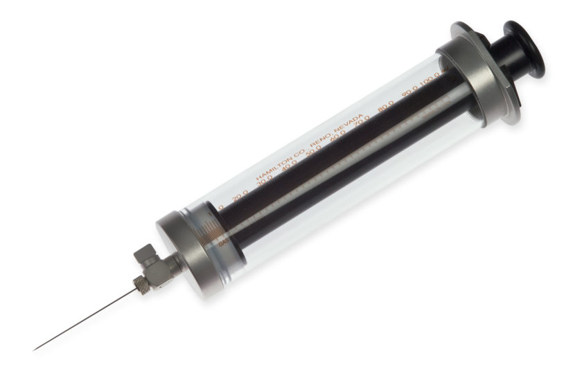 HAMILTON样品锁进样针让您在收集、储存、运输和分析液体或气体样品时,避免蒸发损失或环境污染的危险。进样针容量从50uL到100mL,带有一个易于操作的旋转阀和一个样品锁的固定端,避免了样品损失和柱塞爆裂。可选的公鲁尔连接器能与不同类型接口的进样针配合使用。