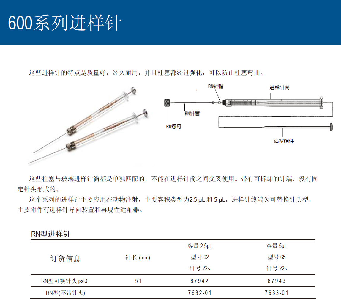 | 5 µL,RN(针头可换)型,不带针头,针头需另购