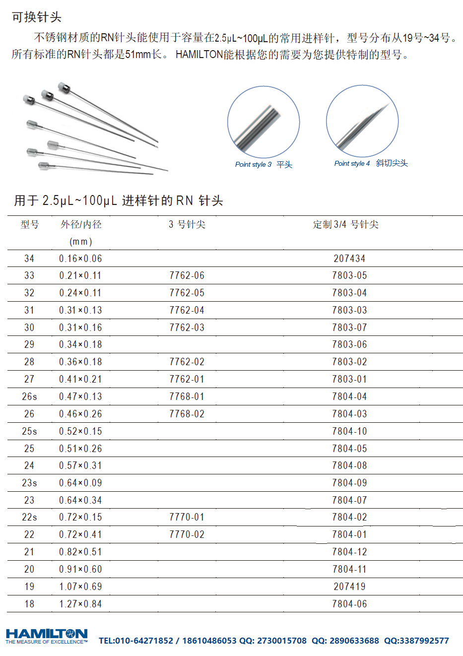 | 5 µL,RN(针头可换)型, 针号:22s ga,针长:51mm,针尖:pst3