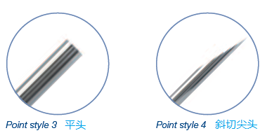 2) 针尖类型:针尖的类型对实验影响非常大,请参考下面的示意图选择合适针尖: