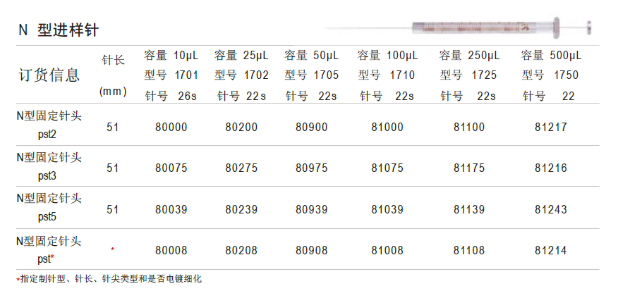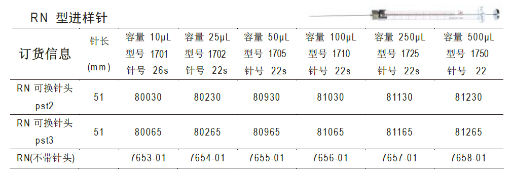 10 µL, Model 1701 RN SYR,不带针头,针头需另购