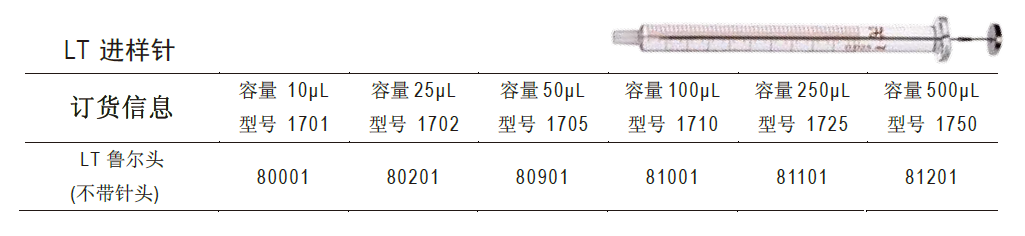 50 µL, Model 1705 LT SYR,不带针头,针头需另购
