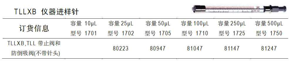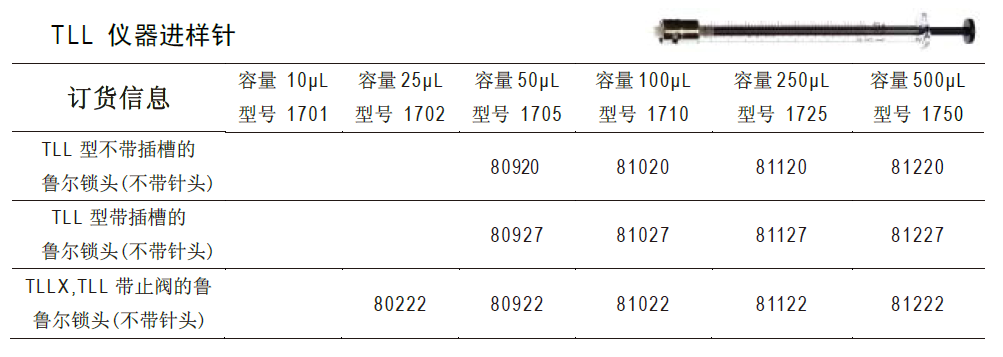 50 µL, Model 1705 TLL SYR,不带针头,针头需另购