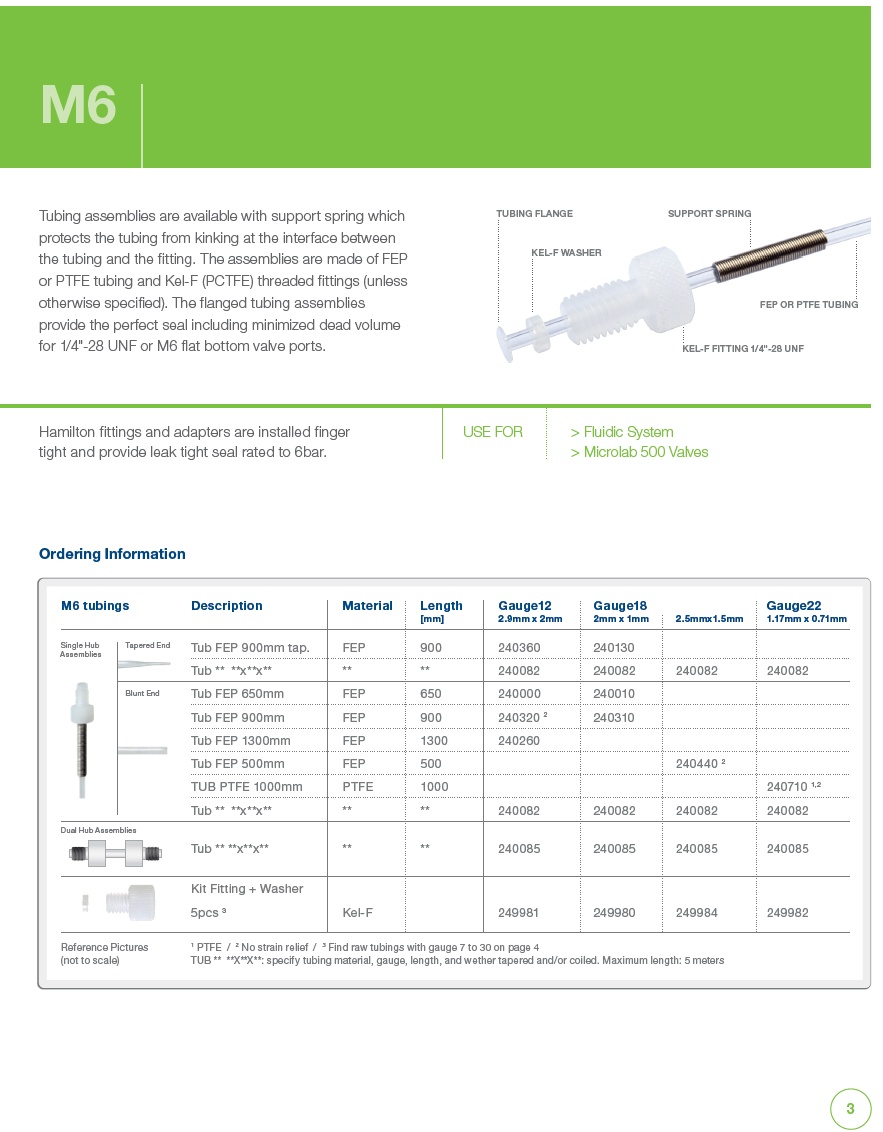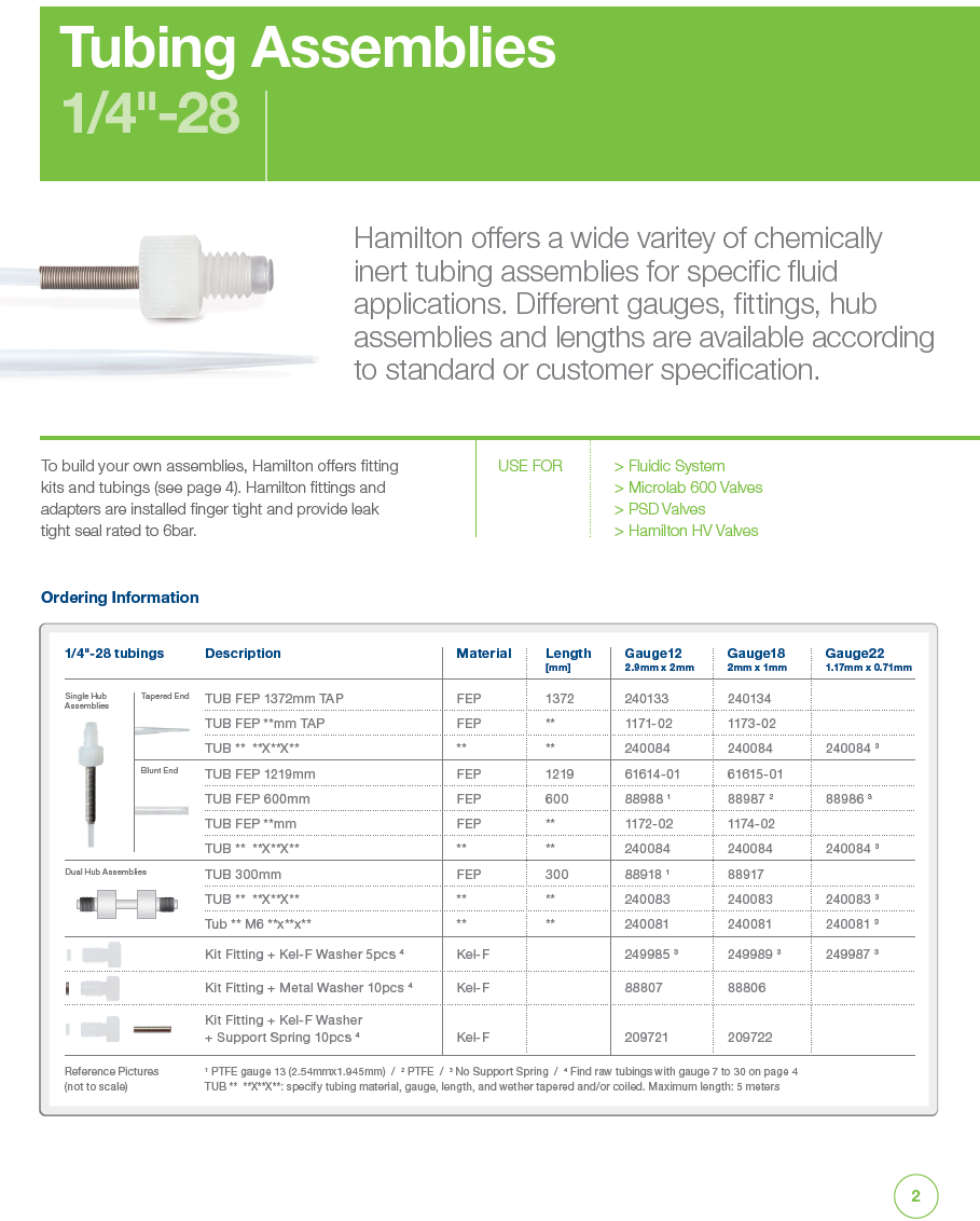 Hamilton聚合物管是由带法兰的聚四氟乙烯PTFE管插入带螺纹小孔的聚卤代三氟乙烯连接器中制造而成的,与LT或TLL进样针联合使用,这些聚合物管形成了一个彻底的惰性系统,可以用于高腐蚀性液体的分配,这种聚合物管有三种不同形式的:在一头带有聚卤代三氟乙烯、两头都带有聚卤代三氟乙烯连接器、不带连接器。标准长度为300mm。